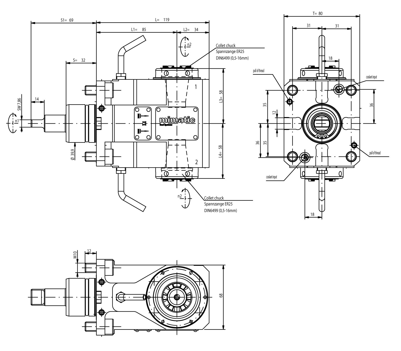 Produktinformationen "Angetriebenes Werkzeug BMT40 Winkel-Einheit 90°, 2-Spindler"