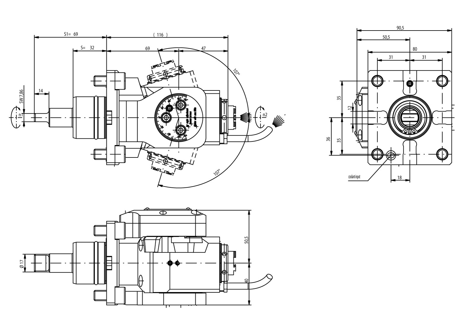Produktinformationen "Angetriebenes Werkzeug BMT40 Winkelschwenkeinheit +/- 107°"