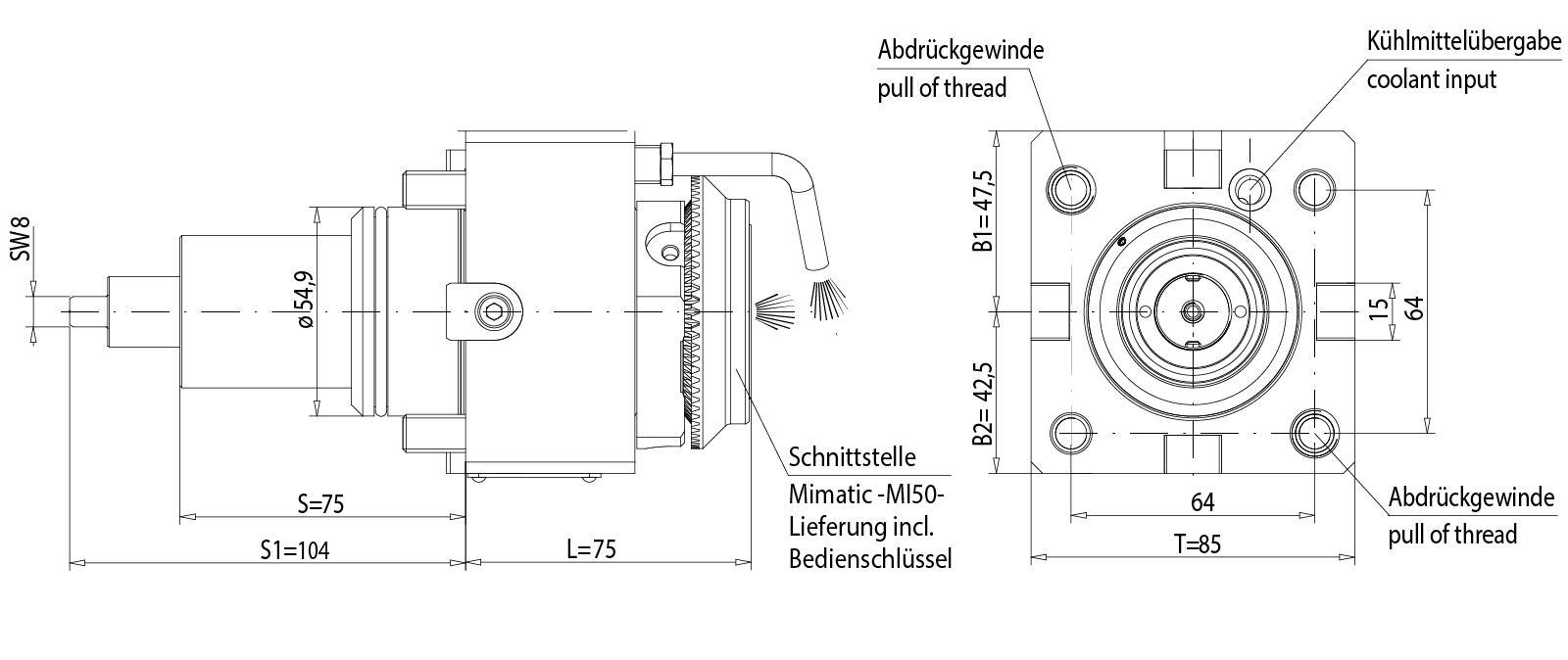 | Kühlmittelzufuhr: | ICE = Externe- und interne Kühlung |