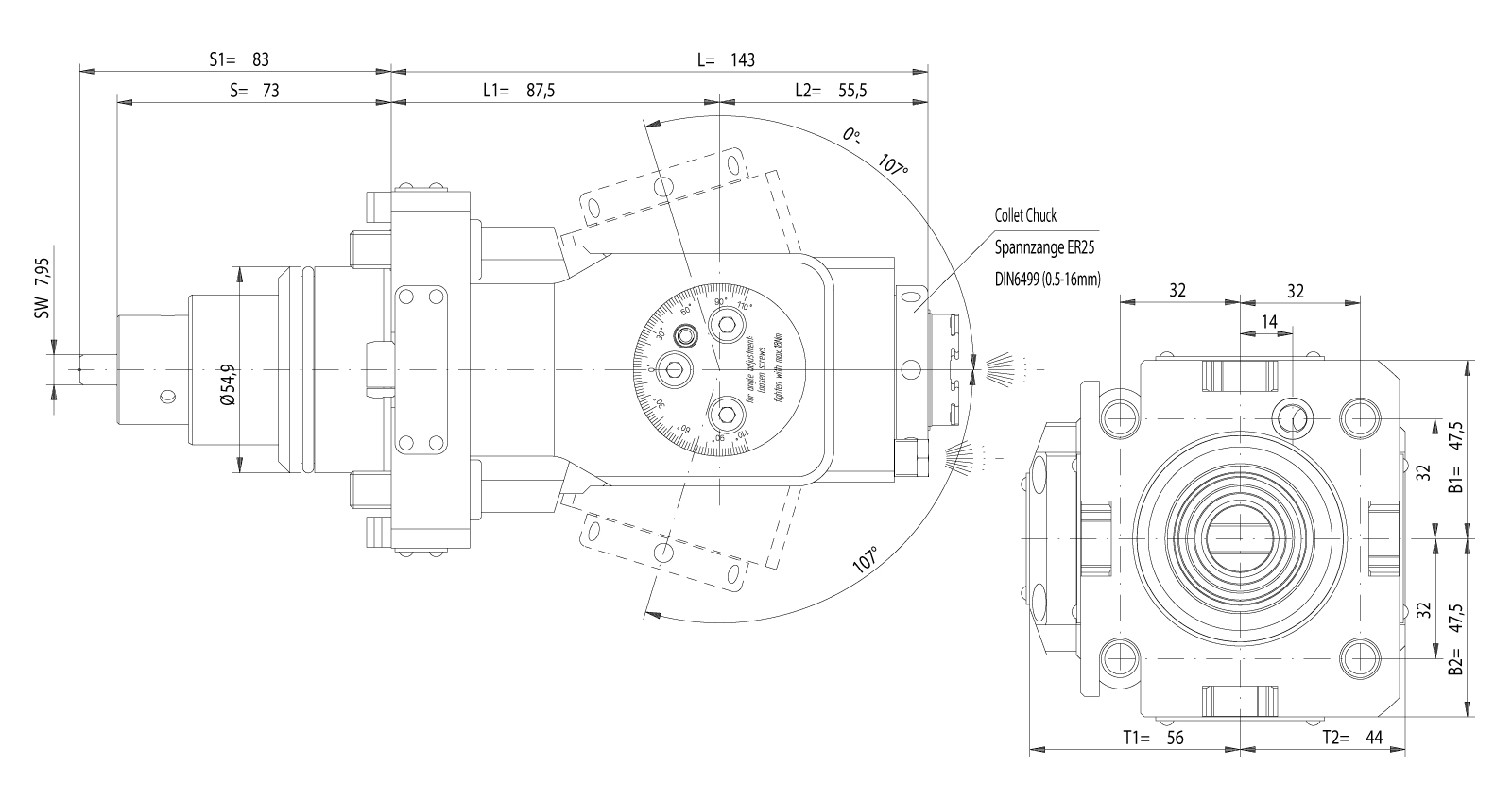 Werkzeugtyp: Winkelschwenkeinheit +/- 107°