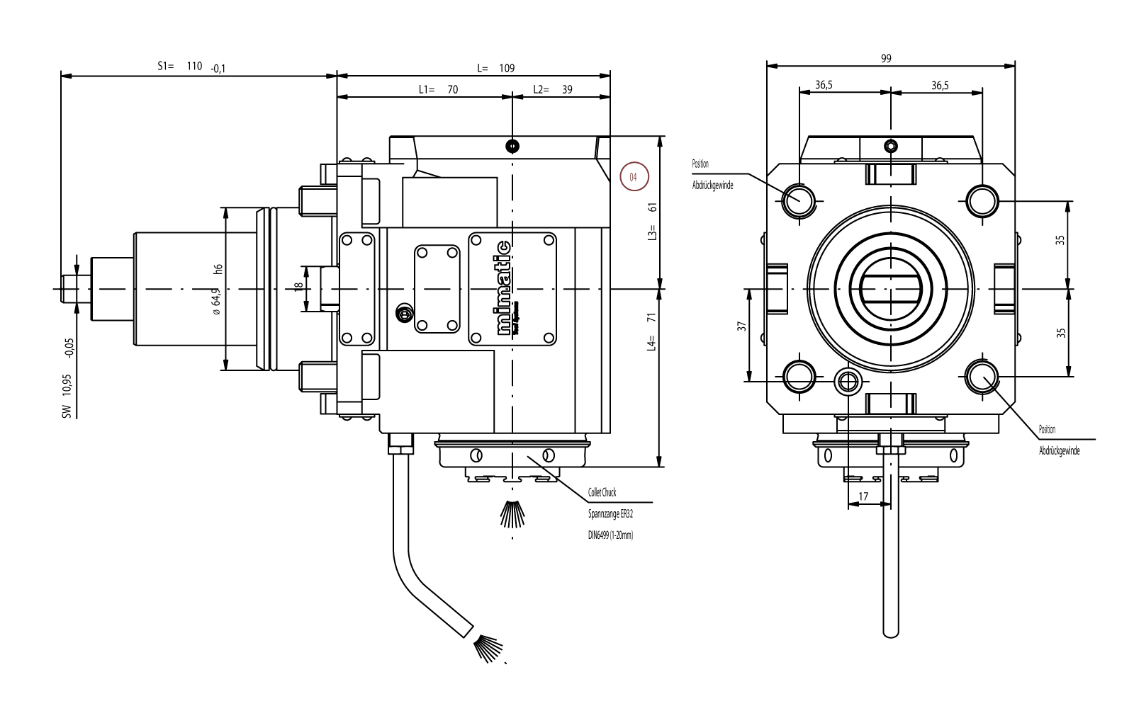 Überschrift: Angetriebenes Werkzeug BMT65 Winkel-Einh