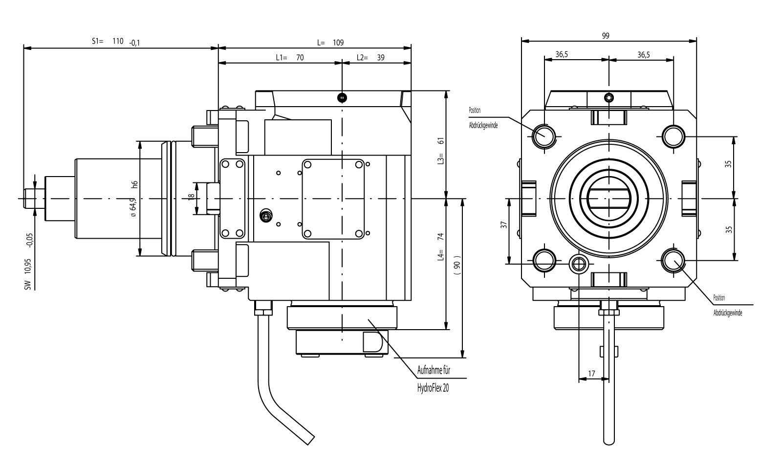 Produktinformationen "Angetriebenes Werkzeug BMT65 Winkel-Einheit 90°"