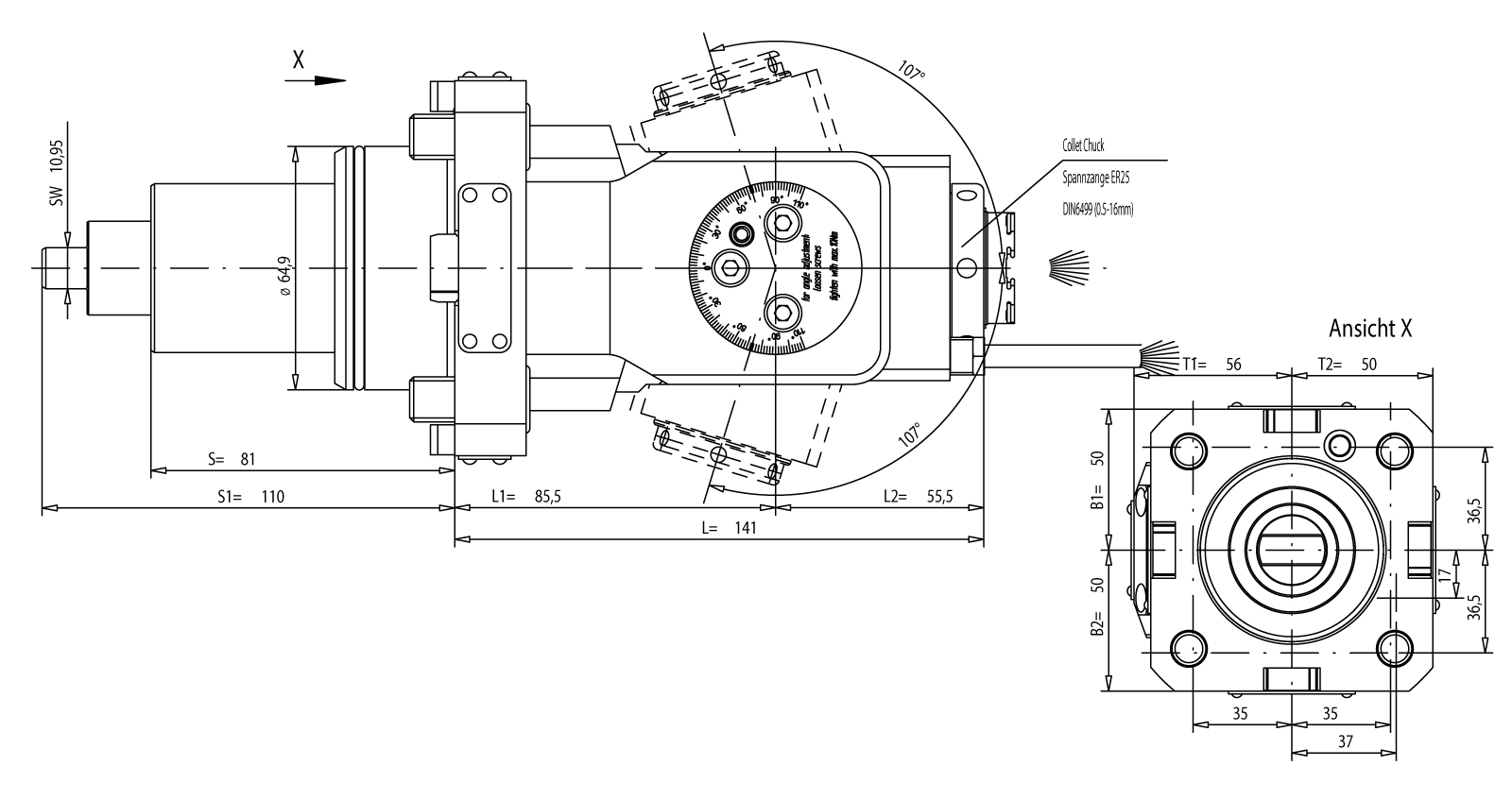 | Werkzeugtyp: | Winkelschwenkeinheit +/- 107° |
