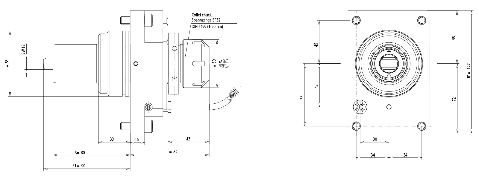 | Lage der ER Spannmutter: | Außenliegend |