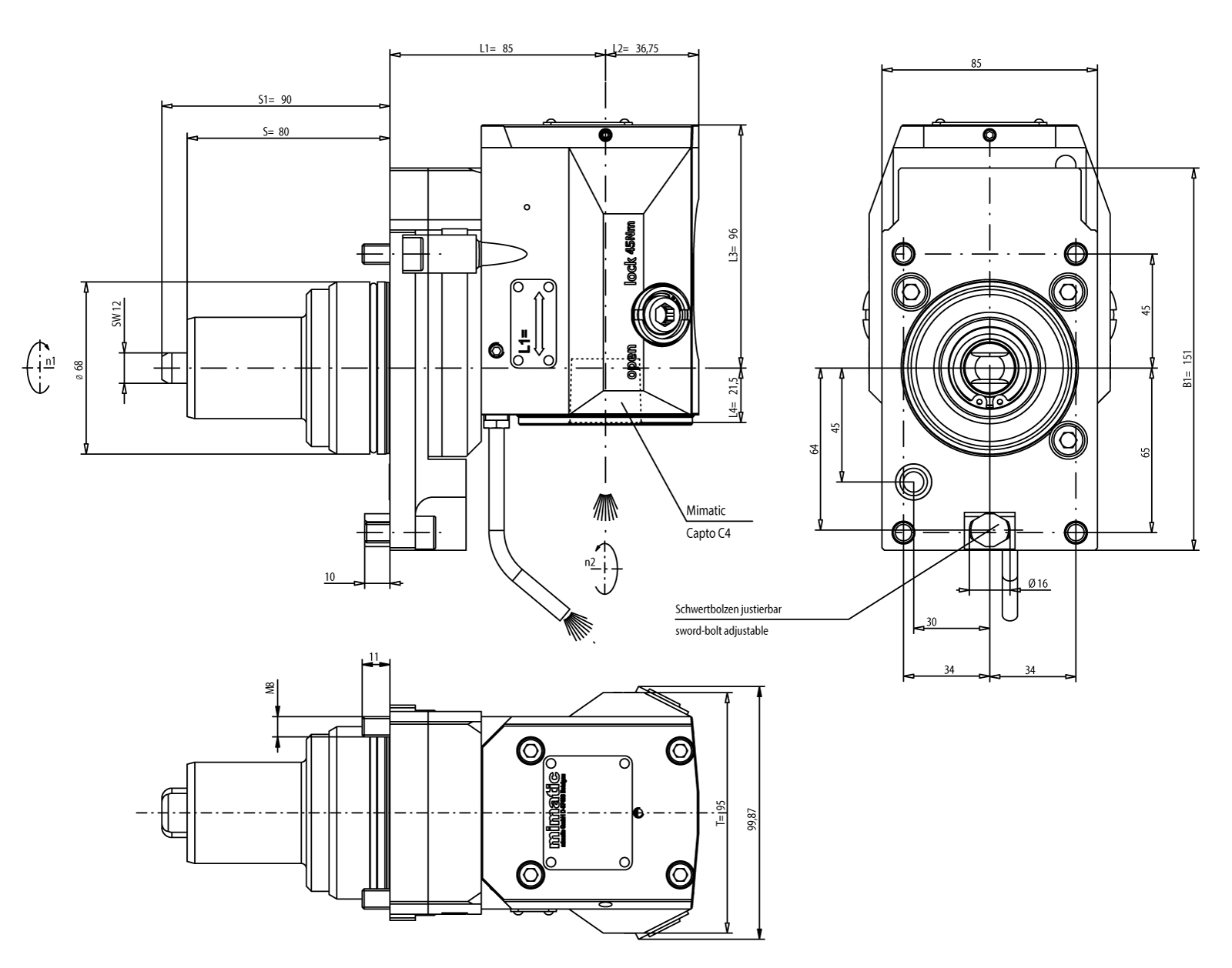 Produktinformationen "Angetriebenes Werkzeug BMT68 Winkel-Einheit 90°, versetzt, für Gegenspindel"