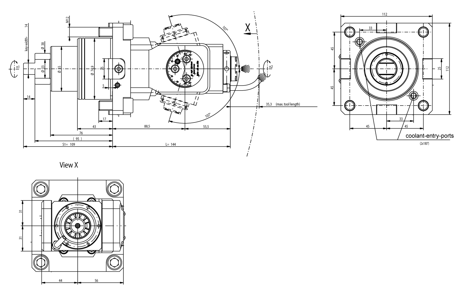 Produktinformationen "Angetriebenes Werkzeug BMT75 Winkelschwenkeinheit +/- 107°"