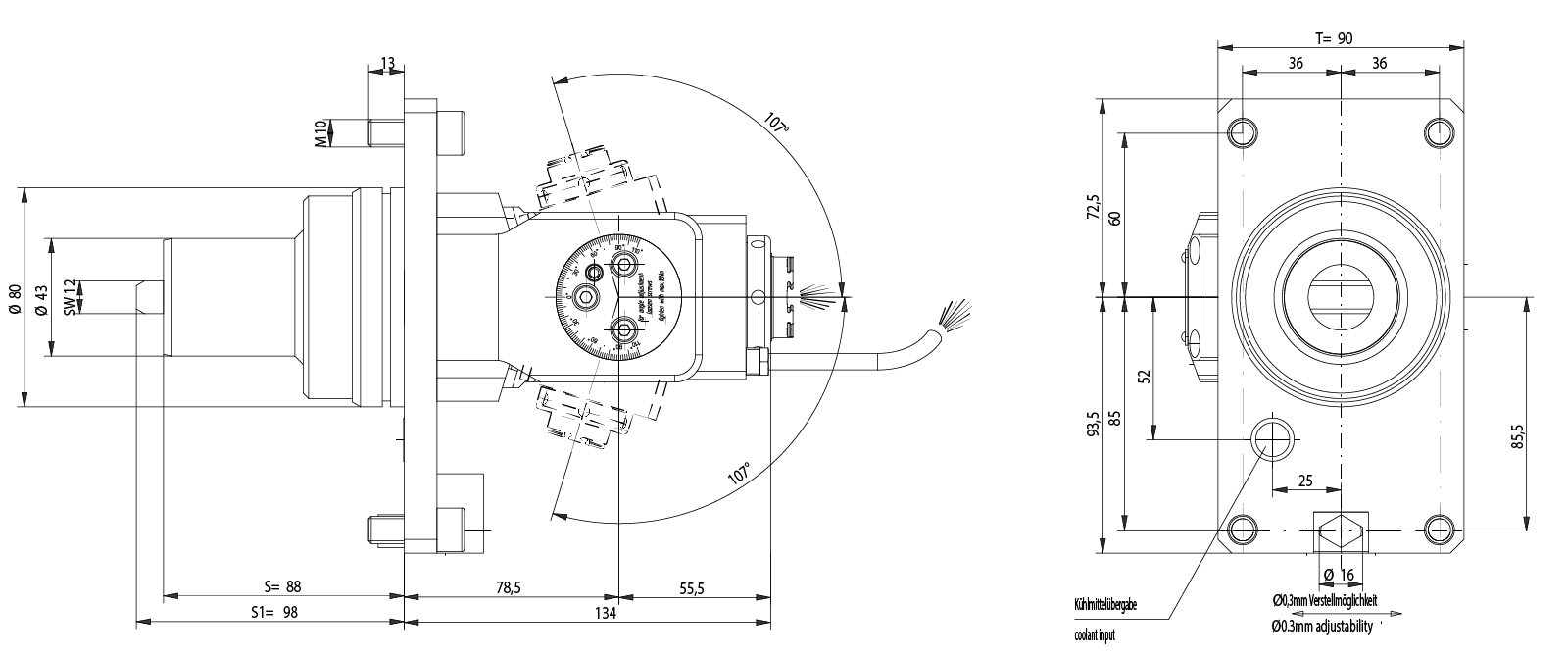 Werkzeugtyp: Winkelschwenkeinheit +/- 107°