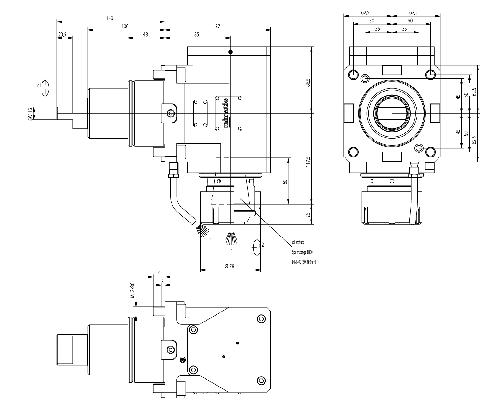 Produktinformationen "Angetriebenes Werkzeug BMT85 Winkel-Einheit 90°"