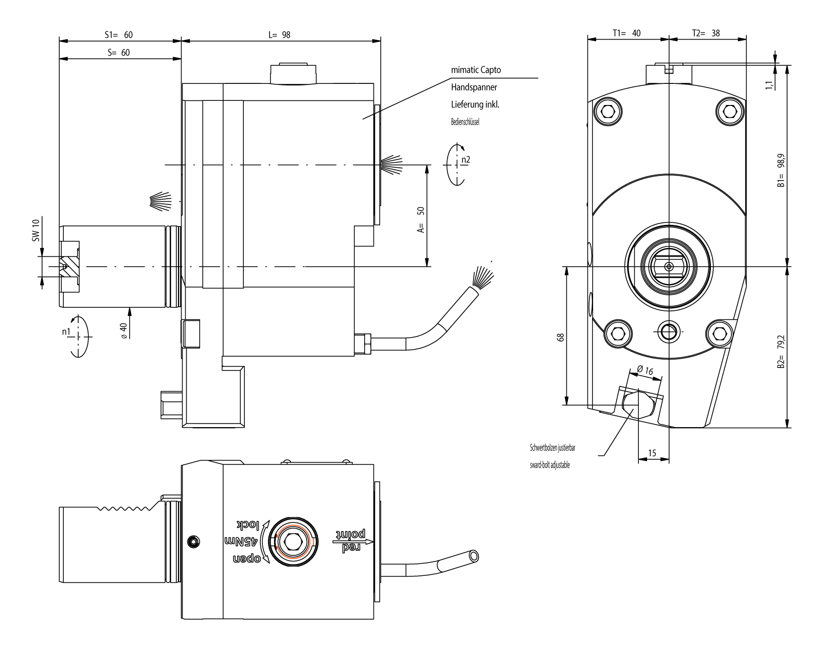 Produktinformationen "Angetriebenes Werkzeug VDI40 Gerade Einheit, versetzt für Gegenspindel"