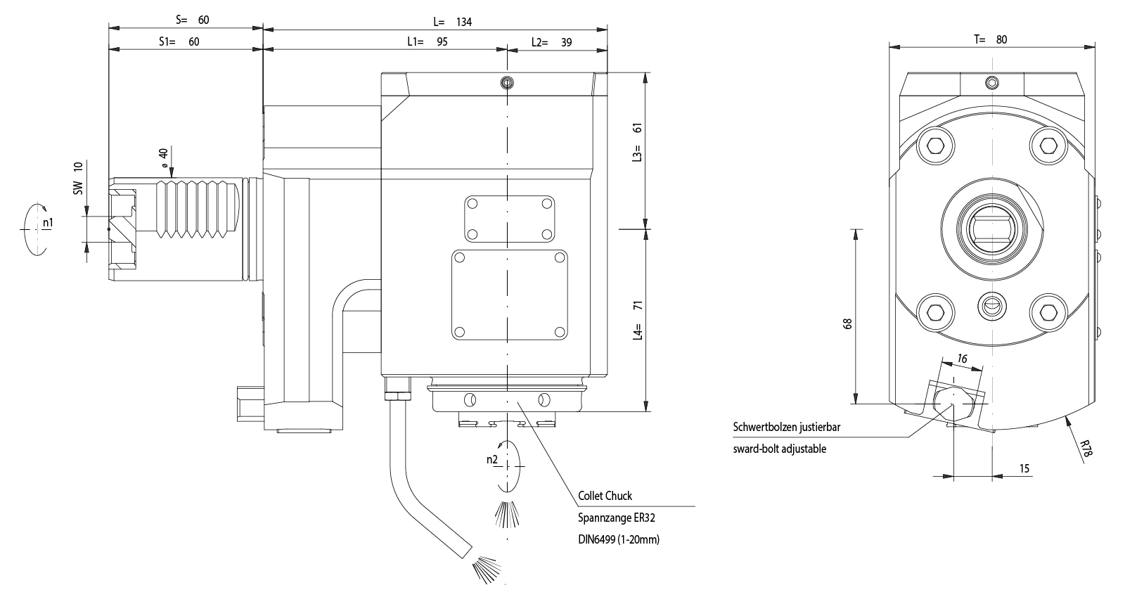 Überschrift: Angetriebenes Werkzeug VDI40 Winkel-Einh