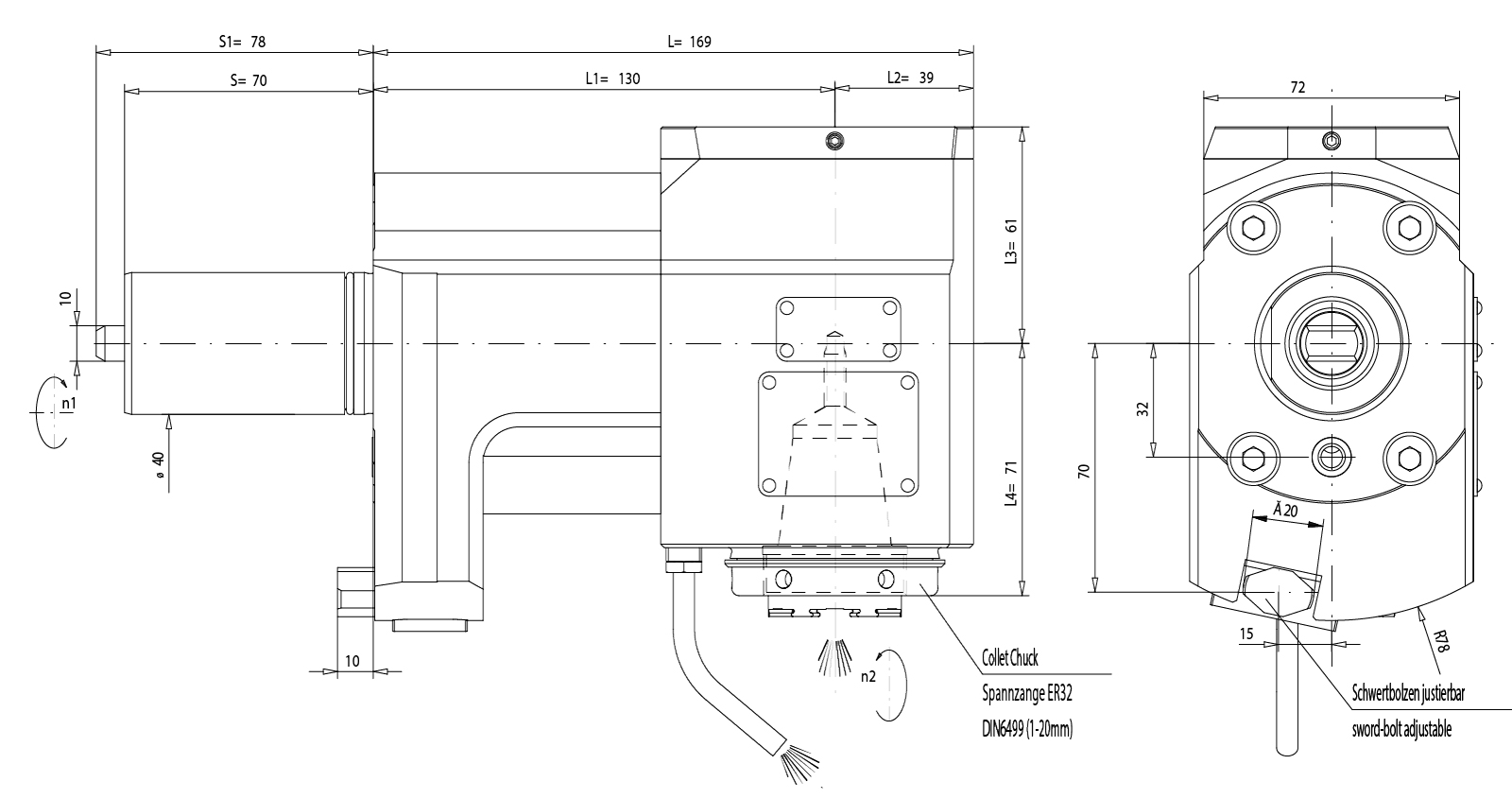 Produktinformationen "Angetriebenes Werkzeug VDI40 Winkel-Einheit 90°"