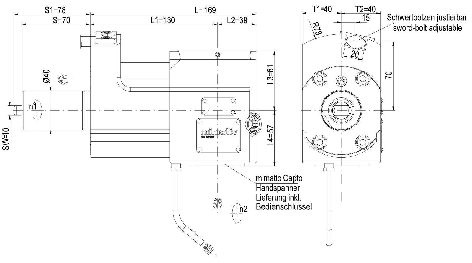 Überschrift: Angetriebenes Werkzeug VDI40 Winkel-Einh