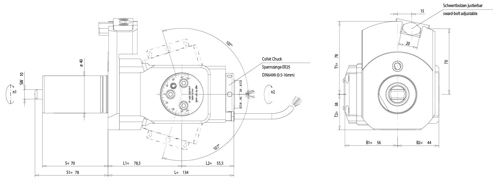 Produktinformationen "Angetriebenes Werkzeug VDI40 Winkelschwenkeinheit +/- 107°"