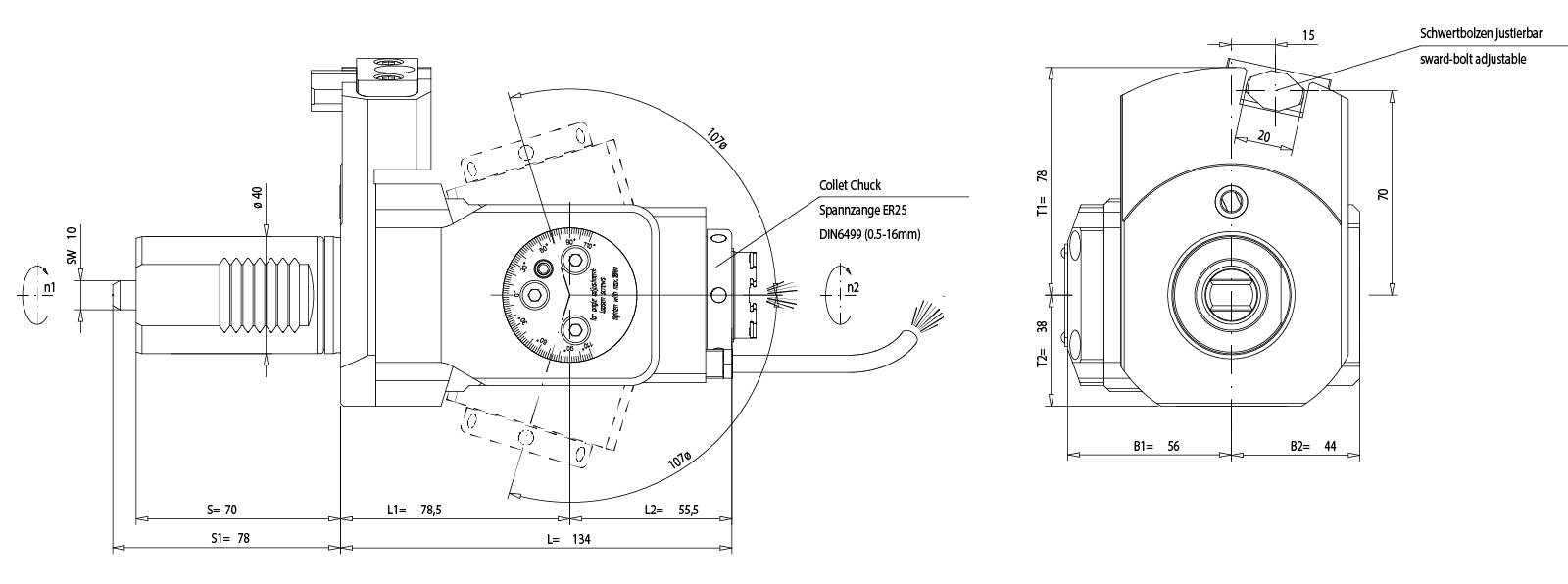Produktinformationen "Angetriebenes Werkzeug VDI40 Winkelschwenkeinheit +/- 107°"