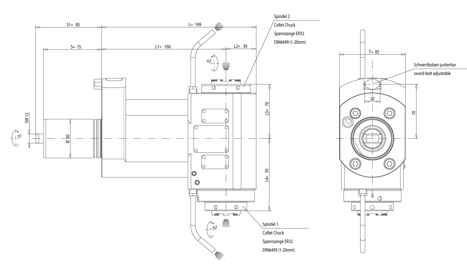 Produktinformationen "Angetriebenes Werkzeug VDI50 Winkel-Einheit 90°, 2-Spindler"