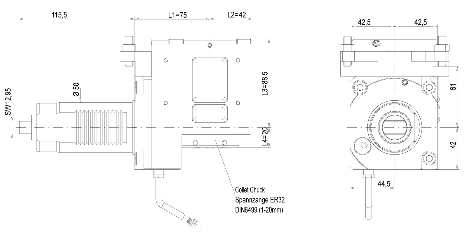 Produktinformationen "Angetriebenes Werkzeug VDI50 Winkel-Einheit 90°, versetzt"