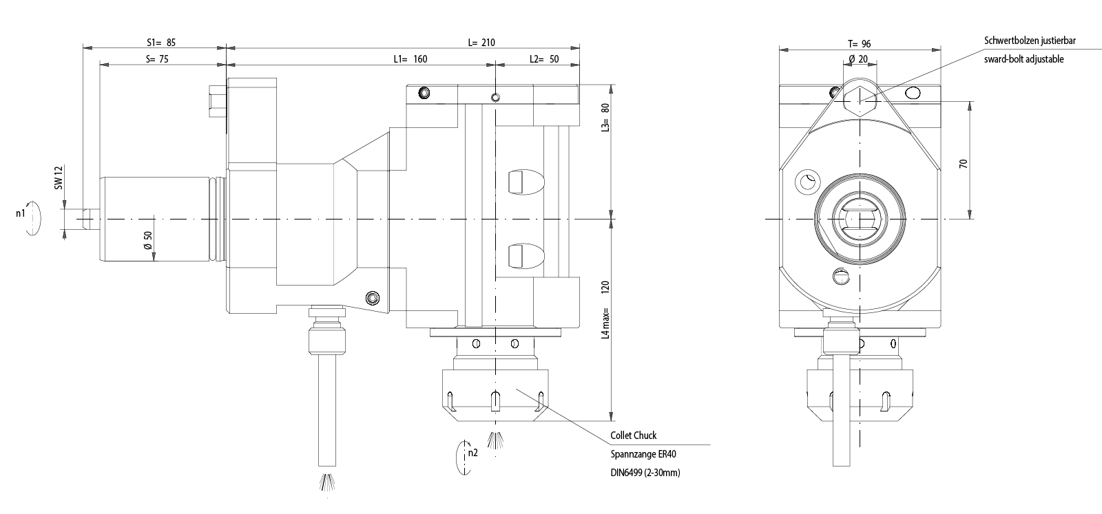| Ausrichtung: | Spindeleinheit 180° umsetzbar |