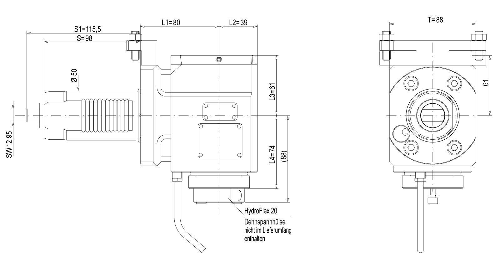 Produktinformationen "Angetriebenes Werkzeug VDI50 Winkel-Einheit 90°"