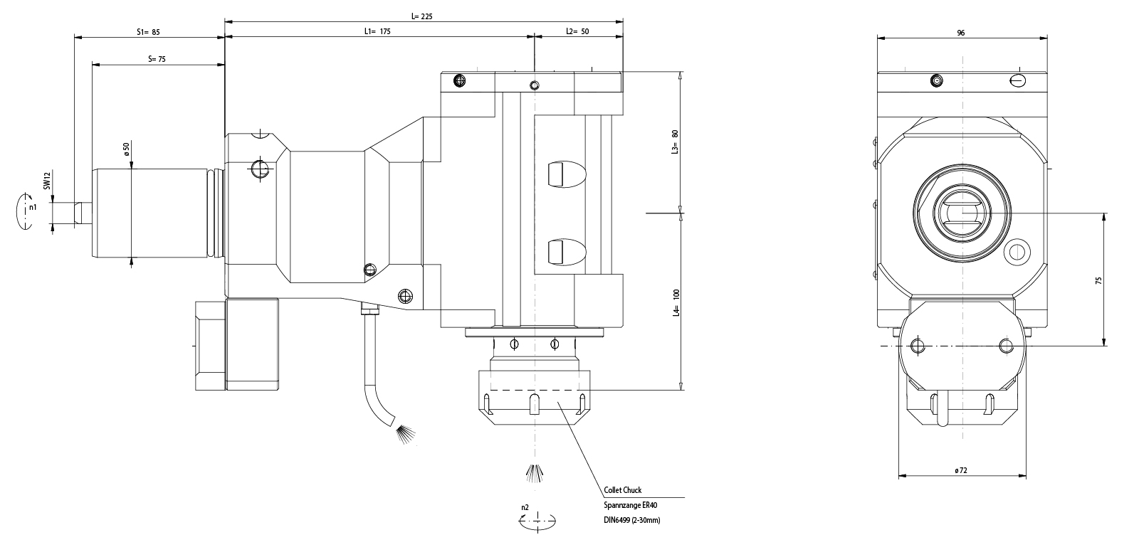 | Ausrichtung: | Spindeleinheit 180° umsetzbar |