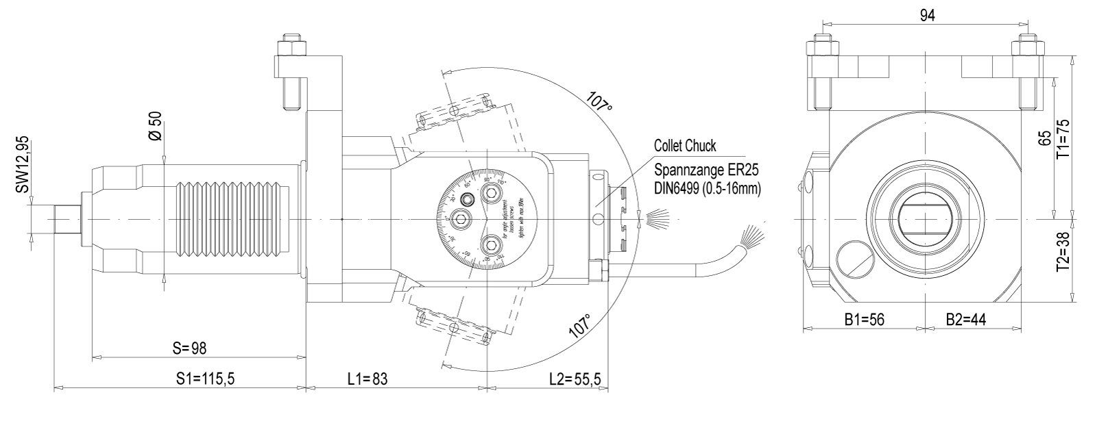 Produktinformationen "Angetriebenes Werkzeug VDI50 Winkelschwenkeinheit +/- 107°"