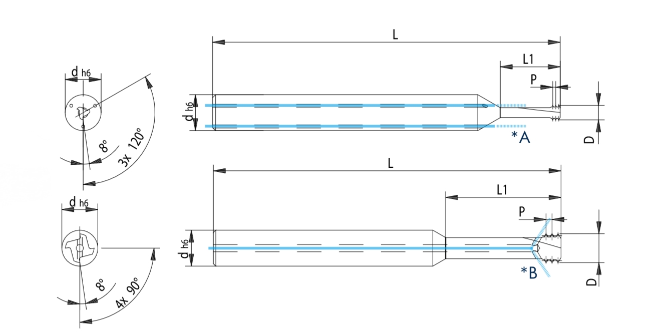 | Innere Kühlmittelzufuhr: | Radial*B |