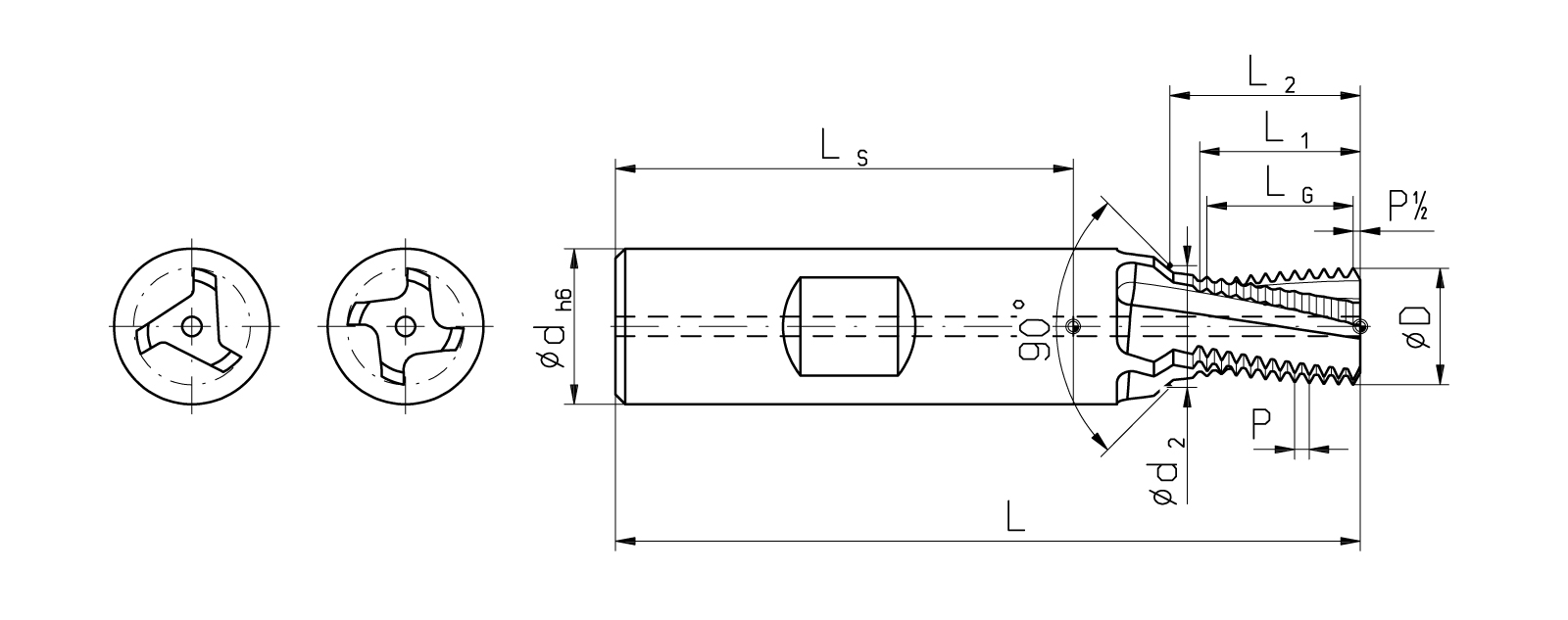 Produktinformationen "Gewindefräser SolidCUT Standard 60° 2xD Senkfase"